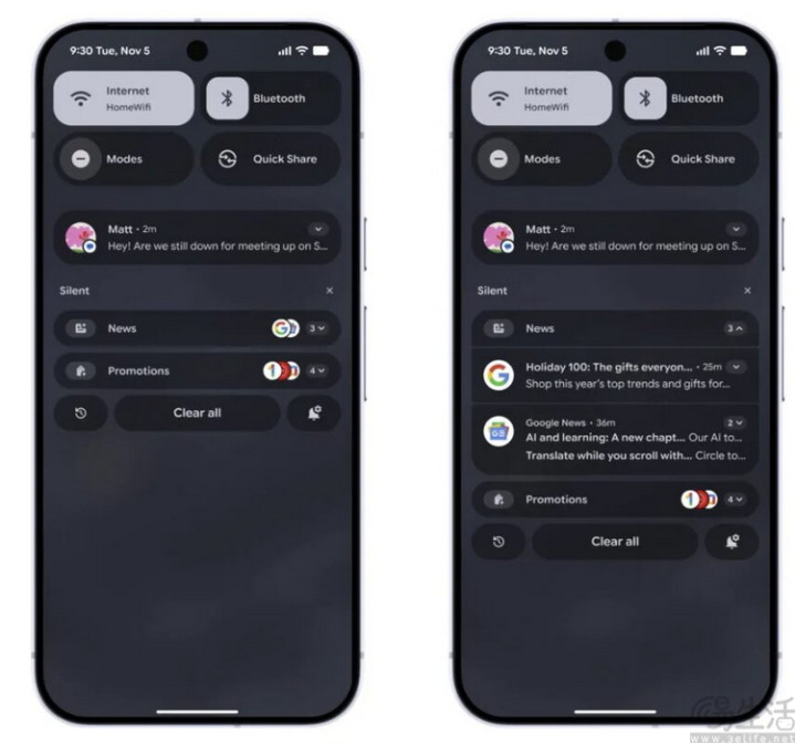 当然,这个“通知栏AI”的能力还不仅限于此。根据谷歌方面透露的信息,它甚至能“看懂”哪些通知实际上是广告,此时AI就会自动缩小这些“广告通知”的字体,让它们看起来更不显眼。这样用户就可以从大量通知信息中,更容易地一眼看出哪些信息“更重要”,从而起到了变相“反广告”的作用。
